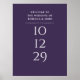Un élégant panneau d'accueil avec votre date spéciale et vos noms, mis dans la typographie moderne sur un arrière - plan violet. Conçu par Thisisnotme©