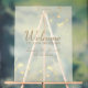 Ce magnifique panneau acrylique d'accueil présente des illustrations florales d'or délicates et un script romantique sur un arrière - plan transparent. Une façon intemporelle et élégante d'accueillir les invités à votre arrivée à votre cérémonie ou réception. Parfait pour les thèmes mariages vintages, boho ou formels.