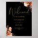 Cet élégant panneau d'accueil à fleurs rustiques peut être personnalisé avec vos informations en typographie or chic sur un arrière - plan noir. Conçu par Thisisnotme©