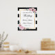 Bienvenue à vos invités à votre soirée de mariage élégante avec ce panneau d'accueil fleuri. Objets assortis disponibles pour compléter ce panneau d'accueil mariage floral noir et blanc orné de fleurs roses contre un arrière - plan rayé noir et blanc. Personnalisez facilement ce panneau floral avec vos détails mariages.