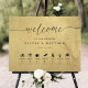 Bienvenue à vos invités avec cet élégant panneau d'accueil mariage noir et or avec timeline ! Capacité de customiser signer avec vos détails et votre propre timing mariage. Si nécessaire, vous pouvez sélectionner la personnaliser à l'aide de l'outil d'édition et réorganiser ou déplacer les images d'icônes et leur texte selon vos besoins en ligne de temps en sélectionnant des images, ou leur texte à l'écran de l'éditeur et en les faisant glisser vers l'endroit souhaité. Conception avec arrière - plan d'impression or attrayant et des icônes de texte et de ligne de temps en noir. Détails de calligraphie manuscrite moderne. Design élégant, simple et propre. Montage facile ou vaporisateur colle/agrafage à MDF peu coûteux pour affichage. Une partie de notre "Black and Gold Monogram Mariage Collection" avec une variété de produits de coordination disponibles. Visitez l'ensemble de la collection à : https://www.zazzle.com/collections/black_and_gold_monogram_wedding_collection-119092477004367833 Dimensions de connexion photo de démo avec stand : 24" x 18"