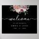 Ce poster de bienvenue mariage présente des fleurs rose aquarelle peintes et de la verdure avec d'élégantes polices blanches sur un arrière - plan noir de minuit. Cette affiche fait partie d'une suite de mariage assortie qui comprend un faire-part de mariage et beaucoup d'autres essentiels mariages.