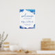 Panneau d'accueil mariage imprimé sur mesure avec une bordure d'aquarelle bleue abstraite pour coordonner avec notre collection Sapphire Tide. Personnalisez-le avec vos noms et vos détails mariages. Utilisez les outils de conception pour modifier les polices et les couleurs ou télécharger vos propres photos pour créer un unique d'un signe de bienvenue mariage.