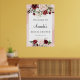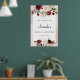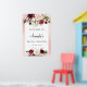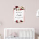 Fleurs rose saumon et roses burgundy arrangées avec une verdure fraîche et des paillettes dorées dans un style bohème - une pancarte de bienvenue parfaite pour votre fête de douche de mariage