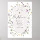 Accueillez vos invités à votre fête prénuptiale avec cette belle affiche, mettant en vedette des fleurs sauvages aquarelles et des abeilles. Ajoutez le nom de l'invitée d'honneur, la date de la fête et le texte de bienvenue personnalisé en utilisant les champs fournis.