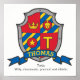 Affiche de monogramme en forme de bouclier de style chevaleresque, parfaite pour la chambre ou la salle de jeux d'un garçon dans des tons de rouge, jaune, bleu et gris. Personnalisez avec le nom de votre enfant et la signification de son nom pour un touche véritablement personnelle dans la chambre ou la nurserie de votre enfant, cet exemple est pour le nom Thomas Twin. Spirituel, charismatique, pratique et athlétique. Impression d'affiche idéale comme cadeau pour un nouveau-né, pour un baptême, une cérémonie de nomination ou une fête prénatale. Dessin de bouclier unique, art graphique et design par Sarah Trett. www.sarahtrett.com pour www.mylittleeden.com