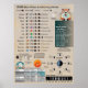 Calendrier des phases lunaires et de l'astronomie 2025 18" X 24". Affiche montrant les phases de la lune avec chaque pleine lune nommée selon l'almanach du fermier. Dates des superlunes, jours où la lune est la plus proche de la terre. Dates des éclipses solaires et lunaires. Dates des solstices et des équinoxes. Heures moyennes de lever et de coucher pour chaque phase de la lune, y compris le pourcentage d'illumination. Diagramme montrant le cycle lunaire ainsi que les phases. Dates et heures de visualisation optimales pour les pluies de météores.