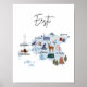 Affiche de carte de l'Estonie avec les principales villes, îles, animaux locaux, attractions et nature.