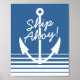 Affiche de décoration nautique | Ancre marine de navire Ahoy. Superbe décoration pour une maison de plage, une chambre d'enfant sur le thème maritime ou une chambre de bébé. Ancre de bateau avec monogramme personnalisé, citation ou nom. Bandes bleues et blanches pour le design marin.