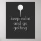 Ce poster de devis de golf est pour les golfeurs en gris et blanc avec texte garder le calme et aller golfer pour la décoration murale à la maison ou au bureau.