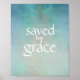 poster de citation inspirant sauvé par grâce sur bleu en détresse arrière - plan avec texte blanc mur art pour la décoration de maison