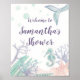 Affiche/enseigne de douche personnalisable avec aquarelles de l'océan peintes à la main. Découvrez plus de produits de fête sur le thème de l'océan et de sous l'océan dans notre boutique ci-dessous ! Ce design présente une œuvre originale de Melissa Rohr, copyright 2020. Tous droits réservés.