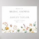 Affiche de fete de mariage Wildflower. Ce panneau de fete de mariage moderne élégant | vintage présente de magnifiques fleurs pressées peintes à la main à l'aquarelle en rose blush, bleu poussiéreux et vert sauge avec une typographie grise. Les articles assortis font partie de la collection Delicate Pressed Wildflowers Bridal Shower.