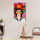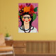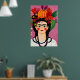 Belle affiche Frida Kahlo aux éléments floraux sur un arrière - plan rose