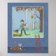 Affiche de garçon râtissant des feuilles