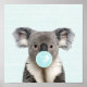 Affiche de koala soufflant du chewing-gum bleu