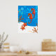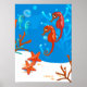 Une illustration aquatique graphique d'un hippocampe mignon et d'une étoile de mer drôle sur une affiche. ©2013charmainepaulson