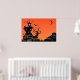 Un cool qui a l'air d'Haunted Halloween House. Il est agréablement arrière - plan orange clair. Dispose d'une maison hantée noire cool avec ses lumières allumées. Bataille effrayante volant autour d'une grande lune de croissant noir. Idéal pour l'halloween ou toute personne intéressée par les goules, les esprits et les fantômes.