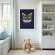 Ajoutez une touche de modernité et de propreté à votre espace avec cette affiche de la nurserie représentant un renard dans la forêt. Le design audacieux du visage de renard sur un fond bleu marine profond fait de cette affiche de la nurserie sur le thème de la forêt une pièce maîtresse qui se démarque au-dessus d'un lit à barreaux, d'une commode ou d'un coin lecture. Cette affiche moderne de la nurserie représentant un renard se marie parfaitement avec une décoration neutre de la nurserie, des meubles en bois naturel et des pièces de style scandinave simple. Utilisez-la comme une affiche minimaliste d'animaux de la forêt pour la décoration de la chambre de bébé, ou mélangez-la à un ensemble d'affiches d'animaux de la forêt pour créer une galerie murale cohérente dans la nurserie. Cette affiche représentant le visage d'un renard est également idéale pour une