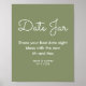 Affiche de signe de pot de date vert sauge pour mariage, douche de mariée en écriture calligraphique élégante. Ce produit fait partie d'une collection, veuillez consulter notre collection de magasin ci-dessous pour les articles assortis. Découvrez plus d'options de taille et de papier ci-dessous pour personnaliser cette option de modèle