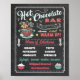 Affiche de menu de bar de chocolat chaud sur tableau noir pour votre prochaine fête. Comprend une tasse fumante de cacao chaud, un cookie homme en pain d'épice, des marshmallows, de la crème fouettée et des polices amusantes. Tous les textes peuvent être modifiés sous les mots "Réchauffez-vous !".