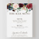 complétez votre événement de mariage rustique avec ce menu de bar de mariage aux fleurs classiques élégantes. Le design présente de belles fleurs peintes à la main en rose, blush, bleu, marine et bordeaux avec des feuilles vertes, soigneusement regroupées en bouquets élégants pour embellir vos cartes d'invitation de mariage.