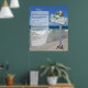 Mariage d'été à la plage avec des roses floribundas blanches au-dessus de l'arche tandis que vous descendez sur un tapis de sable avec les vagues se brisant en arrière-plan pour inspirer une palette pour créer une ambiance chic et glamour pour personnaliser l'affiche du menu