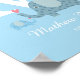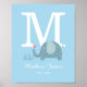 Jolie affiche de nurserie à monogramme initiale, présentant le nom de votre bébé et l'année de leur arrivée avec de doux éléphants parents et bébé à pois sur un fond bleu doux. Un beau souvenir à chérir !