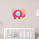 Une affiche de nurserie colorée présente un éléphant rose vif avec des oreilles pointillées de sarcelle et de blanc et un fond avec des points orange, lavande et vert.