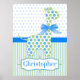 © 2011 Socialite Designs. Une impression murale de nursery girafe à pois fantaisiste et colorée avec un espace pour le nom de votre enfant.