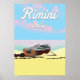 Affiche de plage de Rimini Italie d'un beau vieux bateau à rames sur la célèbre plage de sable.