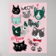 Affiche avec visages de chat drôles pour salle de jeu/nurserie rose