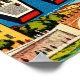 Plongez dans la ville romantique de Vérone avec cette illustration de style carte postale rétro. « VÉRONE » apparaît en lettres majuscules grasses remplies de minuscules images de l'Arène romaine, du balcon de Juliette et du pont Castelvecchio. L'arrière-plan montre l'Arène et des rues animées dans un style vintage coloré. Parfait pour célébrer la ville italienne de l'amour.