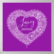 Nom artistique affiche de cœur en dentelle blanche idéale pour la chambre ou la salle de jeux d'une fille. Personnalisez avec votre propre nom et la signification du nom pour un toucher vraiment personnalisé pour la chambre ou la nurserie de votre enfant, cet exemple est pour le nom Lacey Jolie tresse, chic, élégante et confiante. Impression d'affiche mignonne idéale pour un nouveau-né ou un baptême ou un cadeau d'anniversaire pour fille la couleur de fond peut être modifiée si nécessaire actuellement violet. © Conception d'art encre unique par Sarah Trett. www.sarahtrett.com pour www.mylittleeden.com