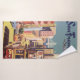 Illustration vintage d'une affiche de voyage des États-Unis d'Amérique représentant San Francisco, Californie avec une vue sur le pont de la baie et les tramways descendant California Street dans le quartier chinois.