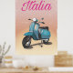 poster de voyage en scooter Italia - affiche de voyage en Italie rétro.