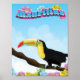 poster de voyage à l'île Maurice - dessin exotique de dessin animé du toucan.