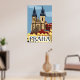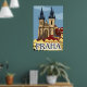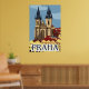 Ce poster vintage est une illustration du Carré de la Vieille Ville. Le grand bâtiment au centre est l'église gothique de Notre-Dame-de-Tyn. Prague est la capitale de la République Tchèque et Praha est l'orthographe tchèque de Prague.