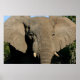 Impressionnant tableau d'un éléphant de taureau qui regarde directement le spectateur, ses oreilles se répandant dans un geste difficile.
