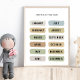 Apprenez aux enfants les mois de l'année de manière belle et apaisante avec ce poster éducatif de style aquarelle. Le nom de chaque mois est clairement affiché sur une touche de pinceau de couleur terre douce, ce qui facilite la lecture pour les petits yeux tout en ajoutant une touche artistique chaleureuse à n'importe quel espace.
