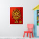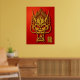 Illustration d'un dragon chinois sur un Arrière - plan rouge Auspicious avec une affiche de calligraphie chinoise