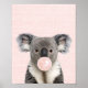 AFFICHE D'OURS KOALA SOFFLANT UN CHICLET ROSE