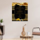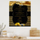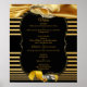 Une texture de soie dorée luxueuse et scintillante drapée à travers deux alliances sur un fond noir dramatique avec une bande de style Déco pour donner au design un look chic et glamour pour personnaliser l'affiche du menu