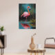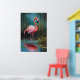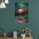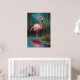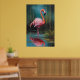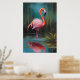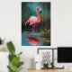 Poster de style peinture à l'huile portrait HD représentant un spécimen de Flamant rose sur les eaux d'un lac