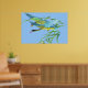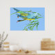 Affiche de Flying Ducks avec deux beaux Flying Ducks dans l'air au-dessus d'une herbe verte et un ciel bleu clair. et DANS BEAUCOUP DE COULEURS.ceci est une belle photo.sur cette affiche