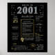 Faites un voyage en arrière jusqu'en 2001 avec notre carte d'anniversaire numérique captivante, débordant de faits historiques, d'événements marquants et de récits fascinants du passé. Ornée d'accents élégants en or et en argent sur un fond noir saisissant, cette affiche d'anniversaire dégage un charme intemporel.