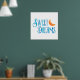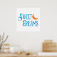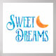 This inspirational & motivational poster would be great for a bedroom, kids room or nursery. It features a orange moon with a watercolor effect. The text reads "Sweet Dreams" with a blue watercolor effect.