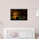Avec une vue époustouflante d'une Oasis de l'île Enchantant avec vue sur l'océan Majestueux.Vous pouvez voir la silhouette de certaines personnes autour d'un feu et le reflet de l'océan du beau soleil orange.ceci sur cette photo est une belle photo sur cette affiche