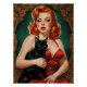 Affiche Pin-up Rousse et Chat Noir