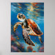 Affiche HD représentant une tortue nageant sous la mer dans un style peinture à l'huile